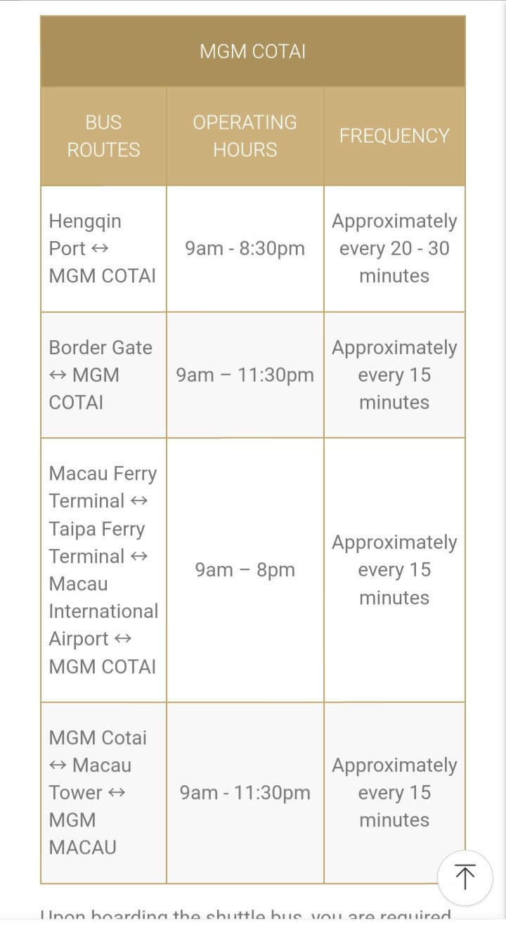 MGM COTAI 호텔 무료셔틀 스케줄