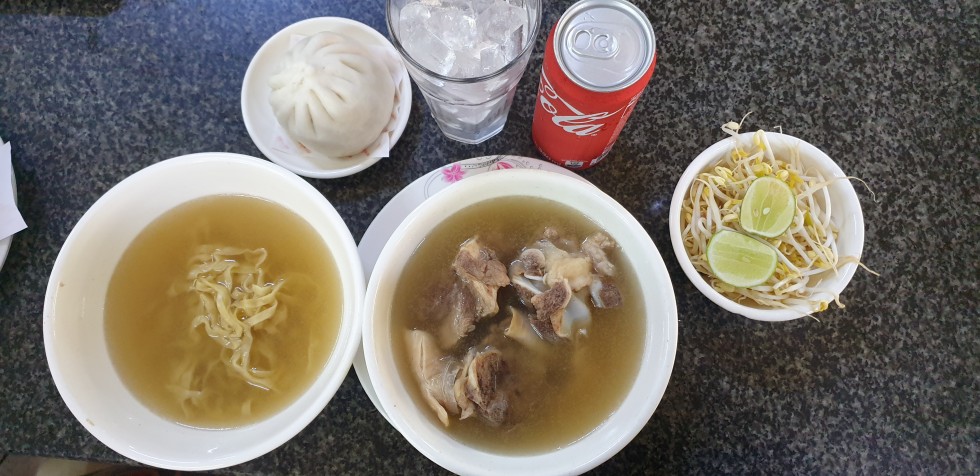 오늘은 점심식사를 하러 로컬 맛집으로 이동 하였습니다 이번에 간 식당은 나만 알고 싶은 맛집 이런 느낌의 로컬식당이고요 영업시간은 아침5시30분 부터 재료 소진시 까지 입니다 오후4시정도만 되도 재료가 거의 떨어져서 문을 닫는다고 보시면 됩니다 제가 먹은 음식은 캄보디아쌀국수인 꾸이띠우 종류인데 이 식당의 특별한점은 면을 따로 고를수가 있습니다 5종류의 면이 준비되어 있으며 제가 주로 먹는 면은 계란면 입니다 푹삶은 돼지뼈가 3개정도 나오면 먼저 돼지뼈에 붙은 고기를 소스에 찍어 먹고 남은 국물에 면을 말아서 먹는 그런 형태의 국수 입니다 로컬음식에 거부감이 없으시고 캄보디아에 놀러 오시면 한번쯤 경험 해보시길 추천드립니다 국수 말고도 다양한 종류의 음식을 팔고 있으니 로컬맛집 체험을 원하신다면 저에게 연락주시면 모시고 가겠습니다