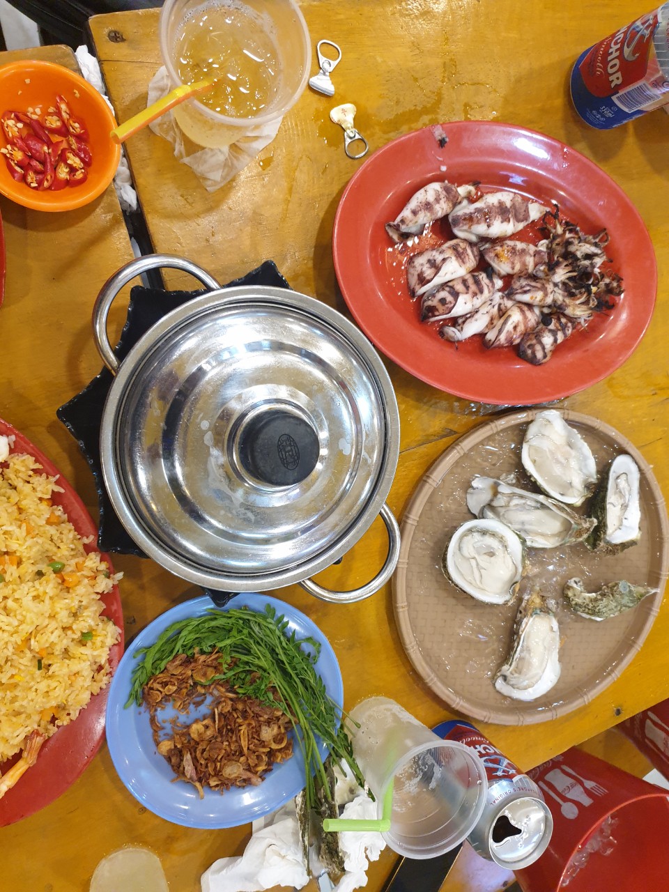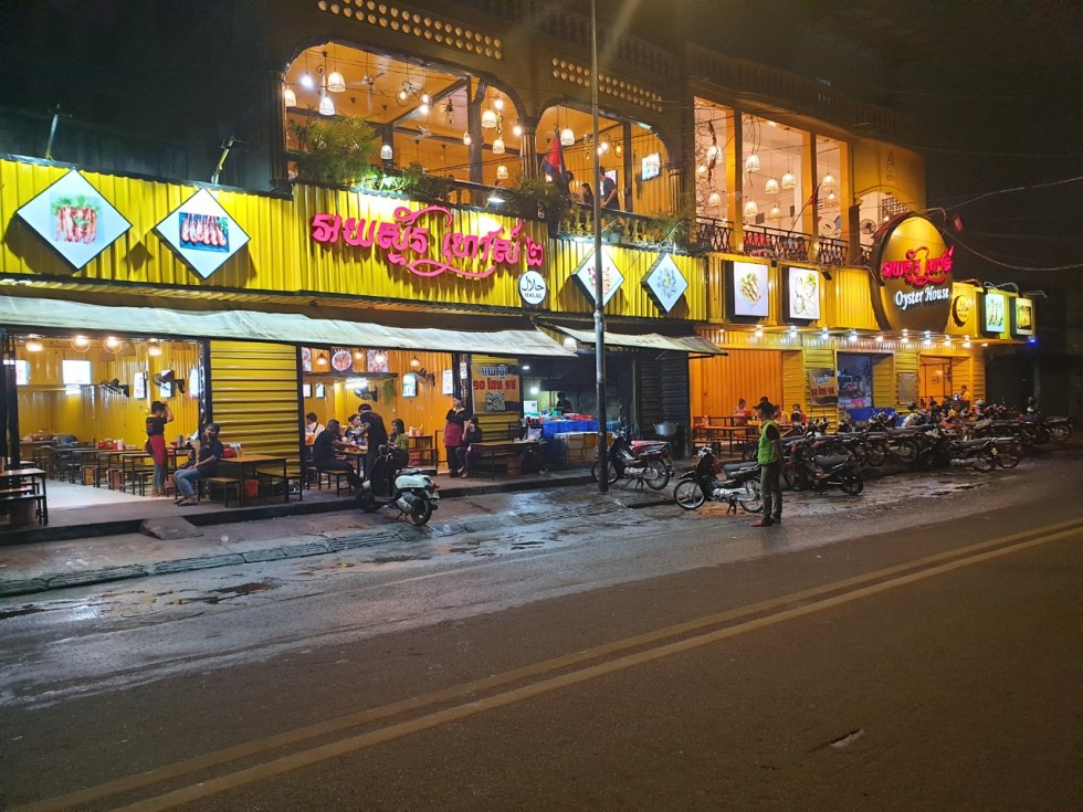 캄보디아 로컬 해산물 전문 음식점인 이곳에는 굴 뿐만 아니라 새우 게 오징어 등등 많은 요리를 팔고 있었으며 식당도 2층 오픈형으로 되어 있어서