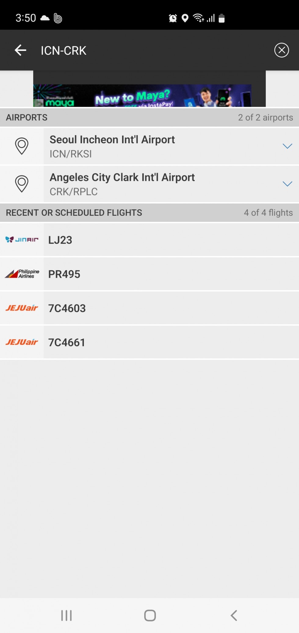 요즘 한국에서 클락으로 들어오는 항공편들입니다.