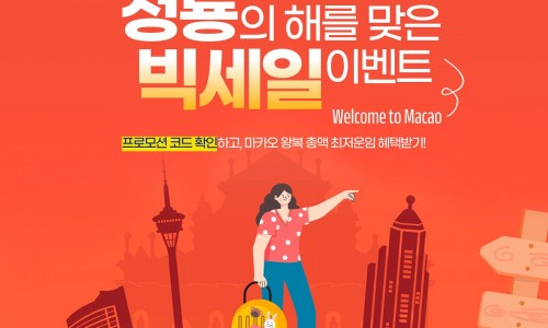청룡의 해를 맞아 준비한 에어마카오 빅세일!할인코드 입력하고 항공권 최저운임 혜택을 받으세요.* 프로모션 코드- MGTB0101* 인천-마카오 왕복 특가- 285,000원~* 일정 확인- 프로모션기간 : 2024.1.22 - 1.31- 출발가능기간 : 202…