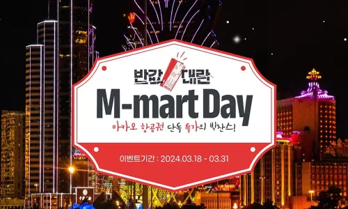 놓칠 수 없는 반/값/특/가! ᴍ-ᴍᴀʀᴛ ᴅᴀʏ 시작믿을 수 없는 항공권 특가를 기다리신 모든 분들, 서둘러주세요마카오로 떠나야만 하는 이유가 생겼습니다.◈ 에어마카오 ᴍ-ᴍᴀʀᴛ ᴅᴀʏ◈ 이벤트기간 : 2024.3.18 – 3.31◈ 반값특가운임 : 인천…