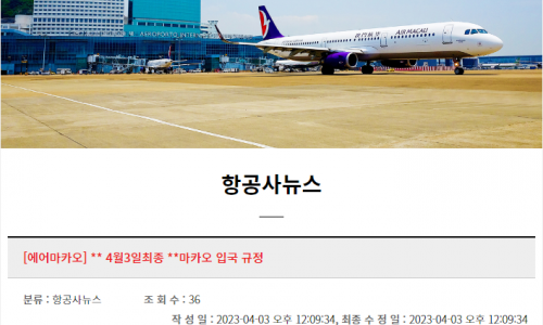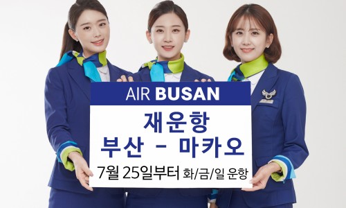 부산 - 마카오 재운항 안내 노선운항기간요일출/도착시간부산-마카오2023.07.25~2023.10.28화/금/일부산 22:05 ~ 00:40 +1 마카오마카오 01:50 +1 ~ 06:20 +1 부산-&n…