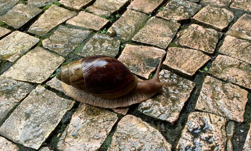 마카오 비온 뒤 달팽이안녕하세요집에 걸어 들어가는데 달팽이가 이렇게 나와 있네요제 손바닥 만한 달팽이에요어릴때 작은 달팽이만 보다가 이렇게 큰 달팽이는 첨 보네요~