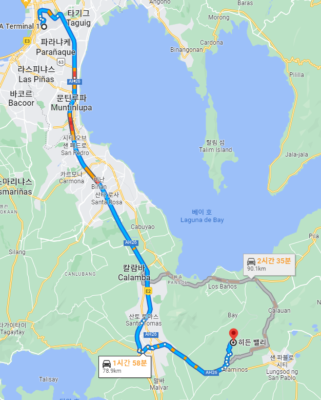 공항에서 차량으로 2시간 거리에 위치한 히든벨리 입니다.