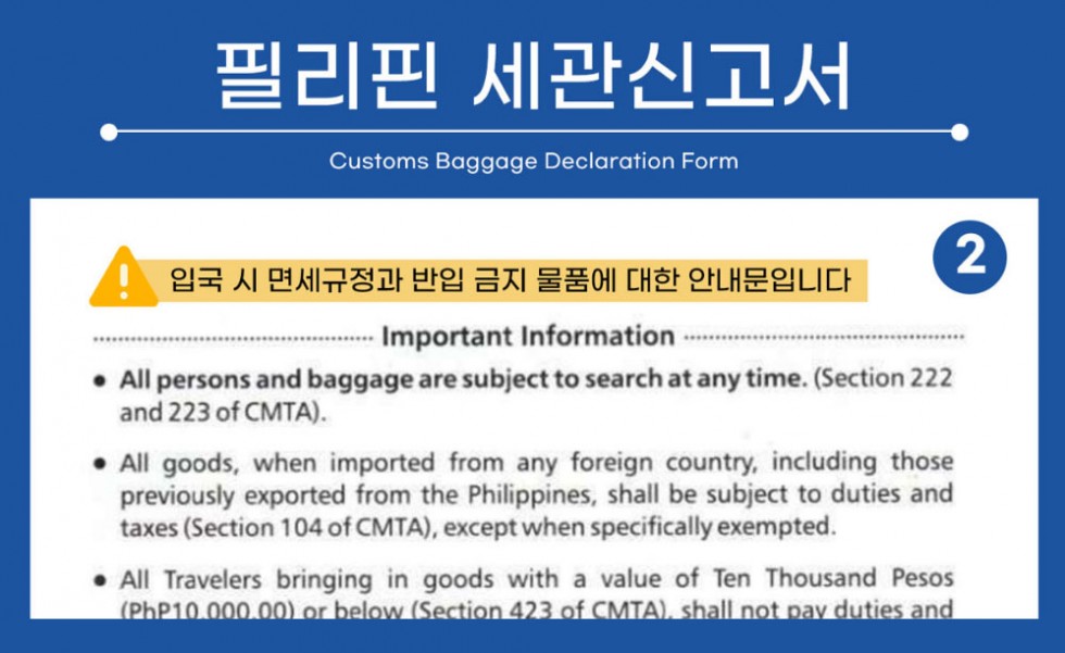 - 공항 사정에 따라 세관신고서 제출이 생략될 수도 있습니다.